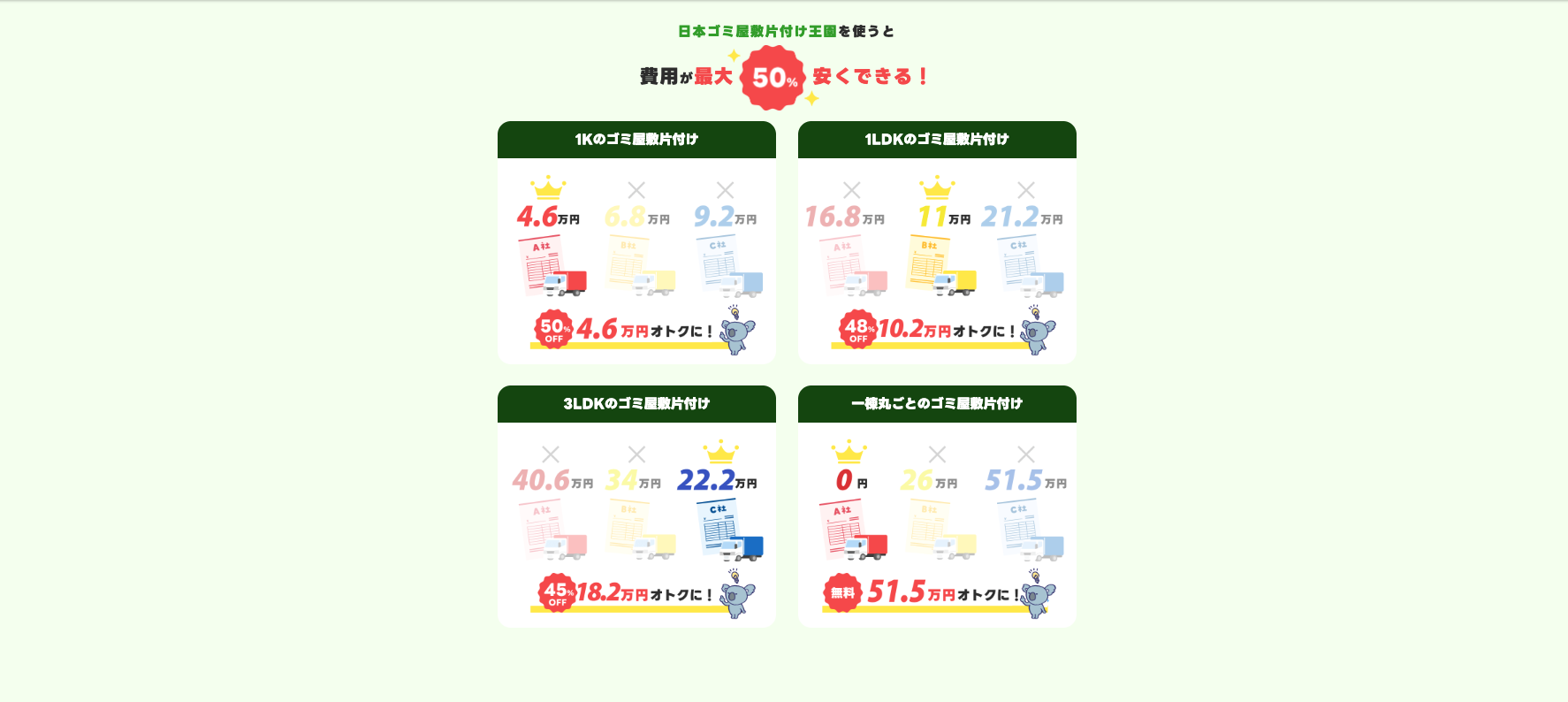 日本ゴミ屋敷片付け王園は、不用品回収・片付け業者を比較できる全国規模の情報サイトです。