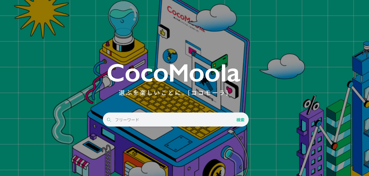 ココモーラは、口コミやアンケートなどの独自コンテンツを活用し、「クレジットカード」や「カードローン」などの金融サービスを中心に、ユーザーが最適な選択を行えるよう支援する情報ポータルサイトです。