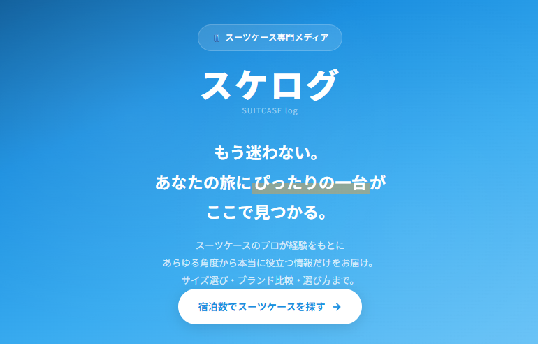 スケログは、スーツケースに特化した専門メディアです。修理現場での実務経験をもとに、ブランド比較やサイズ選び、宿泊日数別の容量目安、失敗しない選び方まで網羅的に解説。実体験に基づいたレビューを中心に、購入前の不安や疑問を具体的に解消する情報を発信しています。スーツケース選びで迷ったときに基準となる情報が揃った専門サイトです。